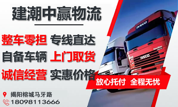揭阳到石嘴山物流专线是建潮中赢物流主营重点物流线路之一,提供4.2-17.5米整车包车运输,零担专线,可上门取货,量大免费提送货;揭阳到石嘴山货运专线价格实惠,欢迎来电咨询。
